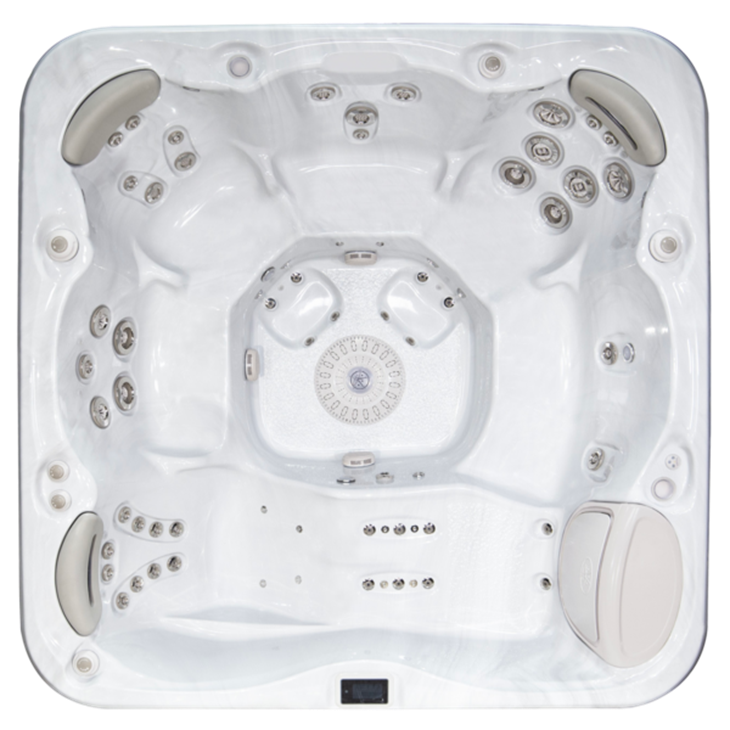 Self Cleaning 779 erbjuder rymliga sittplatser för upp till sju personer och en fullstor liggplats. De ergonomiska formerna och de strategiskt placerade jetsen ger en effektiv massage för rygg, axlar, ben och fötter. Massagezonerna kan justeras efter behov och gör badet perfekt för både avkoppling och återhämtning.