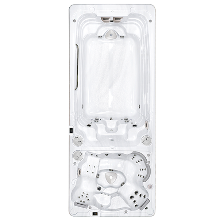 Swimspa-delen är utrustad med Hydropools berömda hydromassagejets, designade för att lindra muskelspänningar och främja blodcirkulationen. Den integrerade massagefunktionen erbjuder en avslappnande och terapeutisk upplevelse efter en intensiv träningssession.